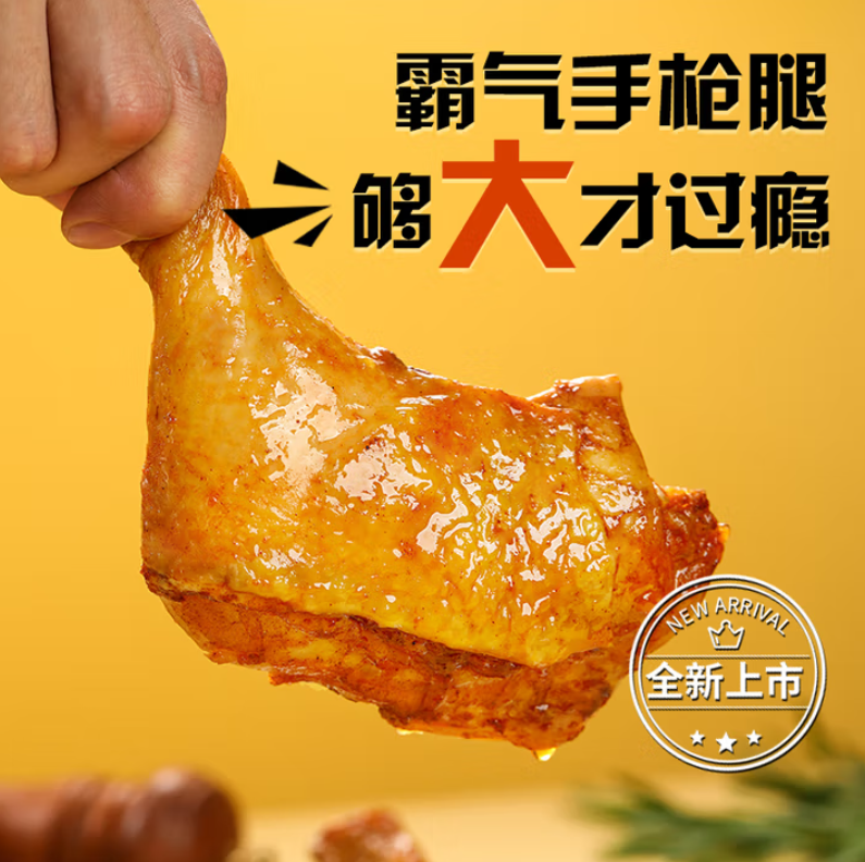 圣農食品“霸氣手槍腿”產品從眾多手槍腿產品中脫穎而出,以“霸氣”等字眼,強調產品的“超大”視覺力,吸引了消費者和行業內外的廣泛關注,很多網紅博主在社交平臺點贊傳播。