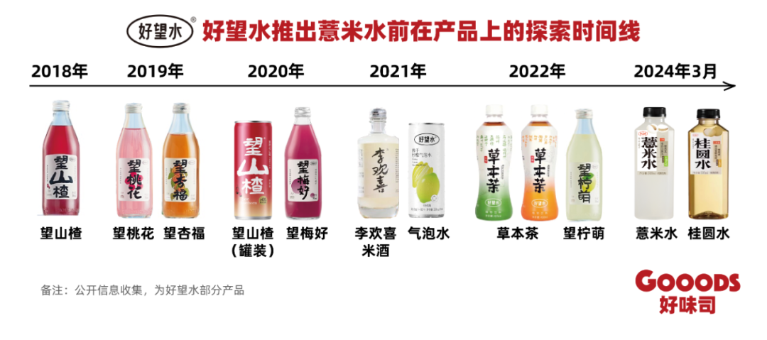 好望水推出薏米水前在產品上的探索時間線,圖片來源:Gooods制圖