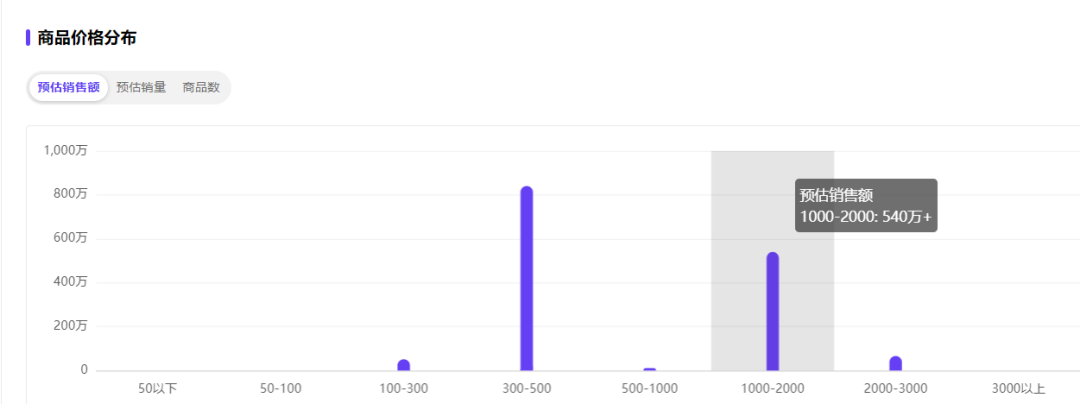 從千瓜數據對比可見,達人直播間銷量最高的商品集中在 300-500 元價格帶,而品牌自播間不僅延續了該價格帶的銷量優勢,1000-2000 元的高客單價產品組合也有不錯的銷量,驗證了店播貨盤策略的有效性。
