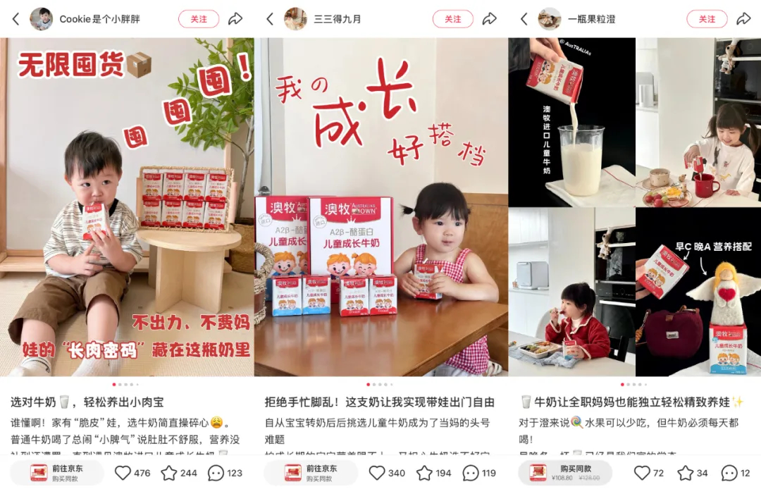 比如定位中高端的進口乳制品品牌澳牧牛奶,就通過“種草直達”實現了從認知拓展到轉化增長的高效閉環。