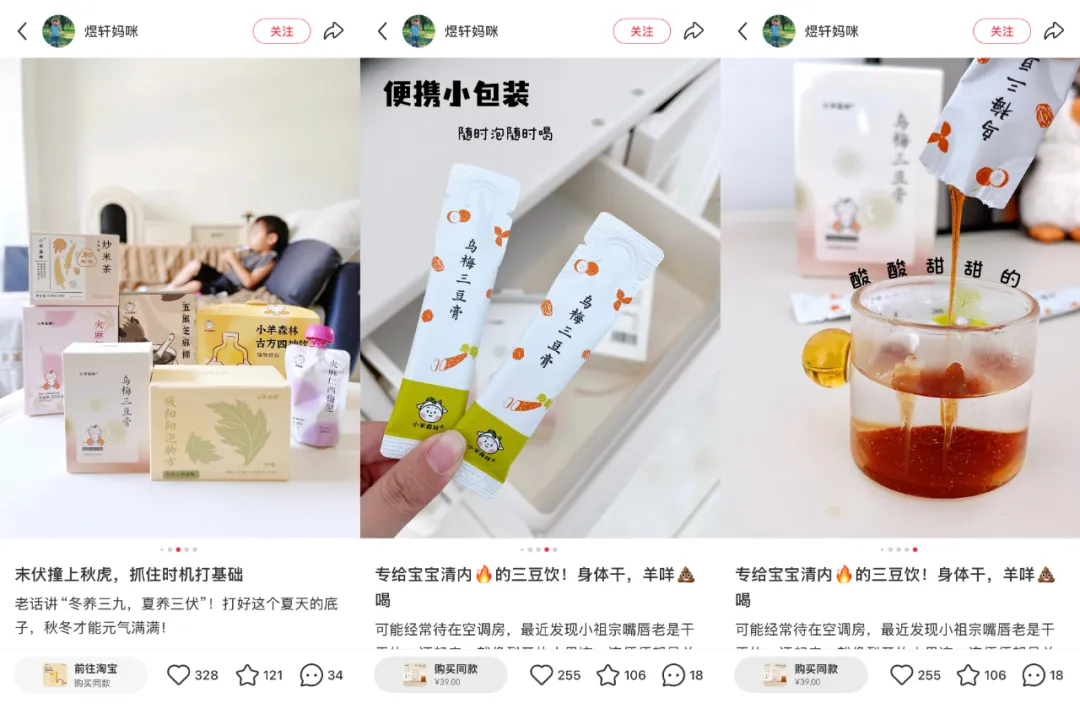 以專注“中式健康育兒”的小羊森林為例,品牌在深入洞察三伏天期間兒童食養需求后,將核心消費場景精準聚焦于“夏季兒童食養”。圍繞這一場景,小羊森林以“場景痛點 + 產品解決方案”為主線,運用數據驅動的“種草直達”策略,巧妙結合搜索關鍵詞與用戶興趣,實現了內容與場景的高效匹配。