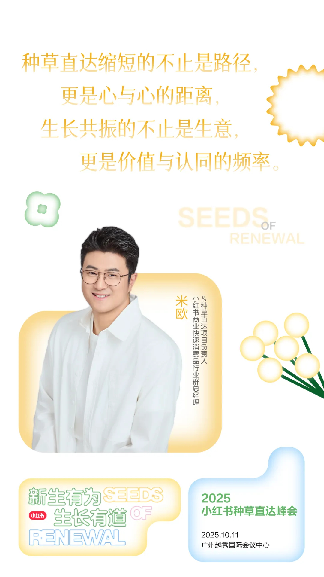正如此次「新生有為,生長有道|Seeds of Renewal 2025小紅書種草直達」峰會上,小紅書商業快速消費品行業群總經理、種草直達項目負責人米歐所說,“種草直達縮短的不止是路徑,更是心與心的距離,生長共振的不止是生意,更是價值與認同的頻率”。