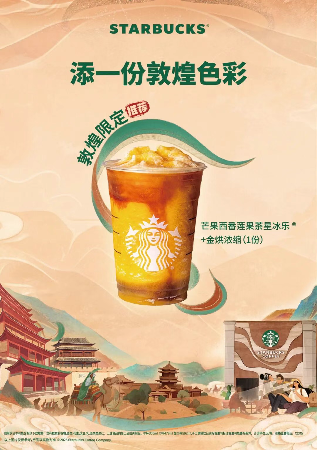 9月23日,星巴克宣布將和敦煌美術研究所聯名推出「芒果西番蓮果茶星冰樂」新品。據官方介紹,該新品融合芒果與西番蓮果味,融入敦煌文化元素設計,風味酸甜清爽,口感層次豐富,適合喜愛特色果茶與文化主題飲品的消費者,契合日常休閑或打卡體驗場景。該新品即將在十一期間于星巴克敦煌首店限時推出。(來源:星巴克)原文鏈接