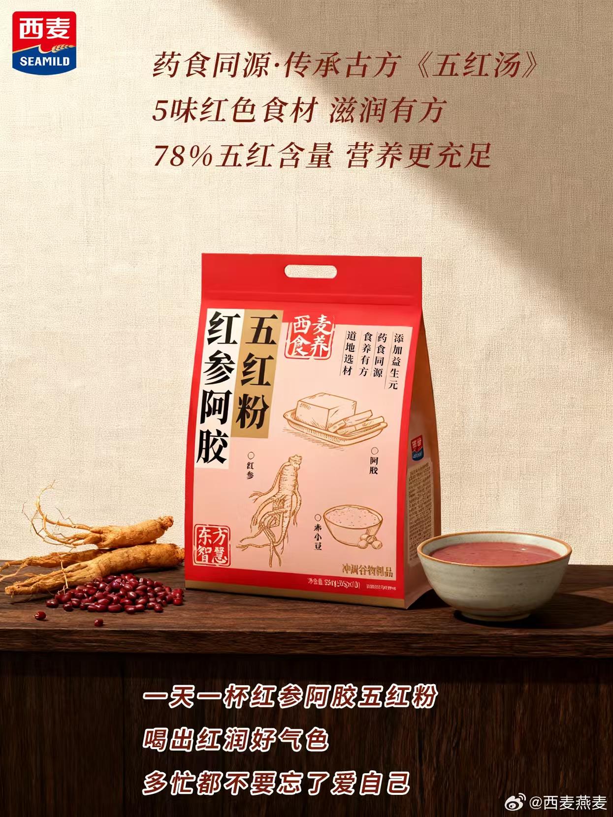 西麥燕麥推出「紅參阿膠五紅粉」新品